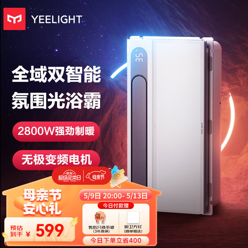Yeelight智能浴霸 多功能风暖 支持米家小爱同学氛围灯 浴室取暖器价格:1099.00元!