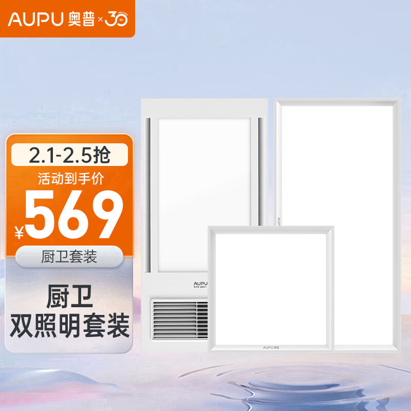 奥普(AUPU)浴霸E172纤薄强弱风暖浴霸 +长灯+方灯双照明套装(附件形式)价格:799.00元!