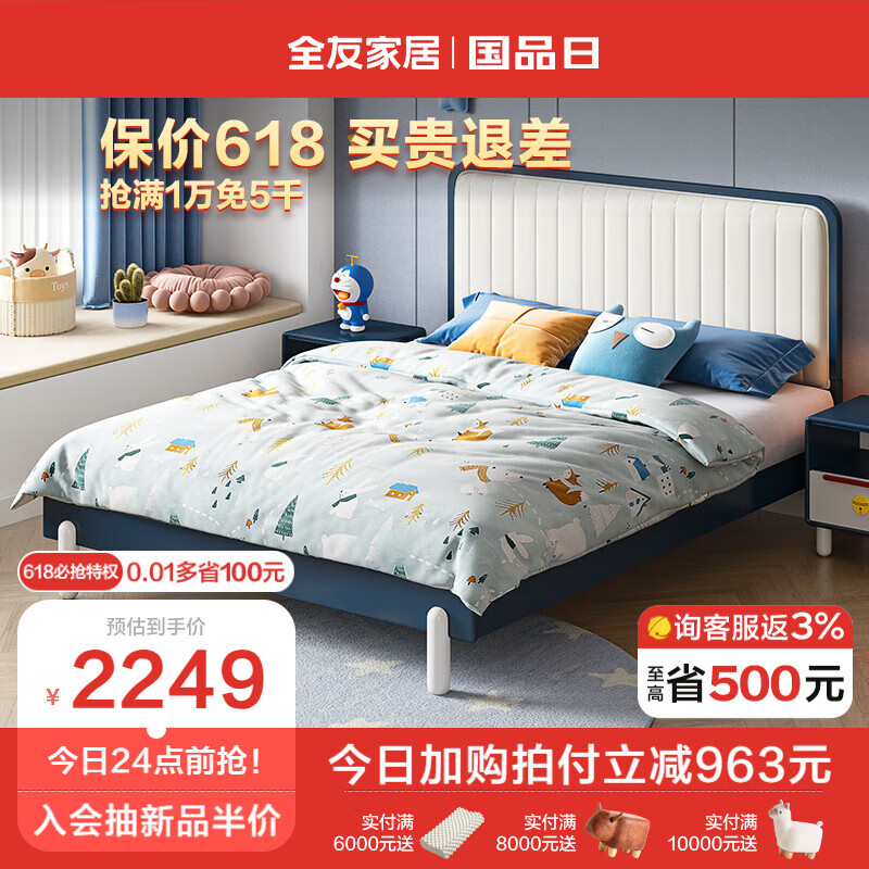 全友家居 现代简约青少年床生态科技皮软包单人床家具组合121339价格:3212.86元!