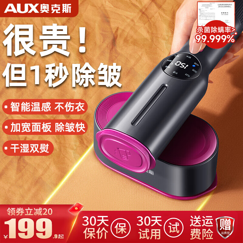 奥克斯手持挂烫机熨烫机家用小型熨斗便携式蒸汽手持电熨斗烫衣服神器ADY-889A 极光红【脉冲大蒸汽+1秒根除褶皱+7档智能温控】价格:239.90元!