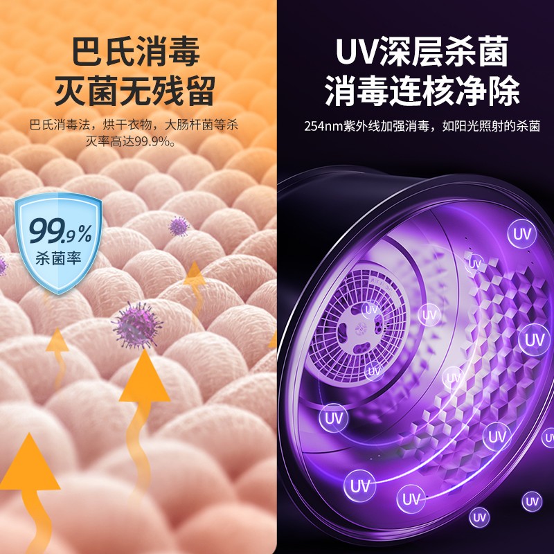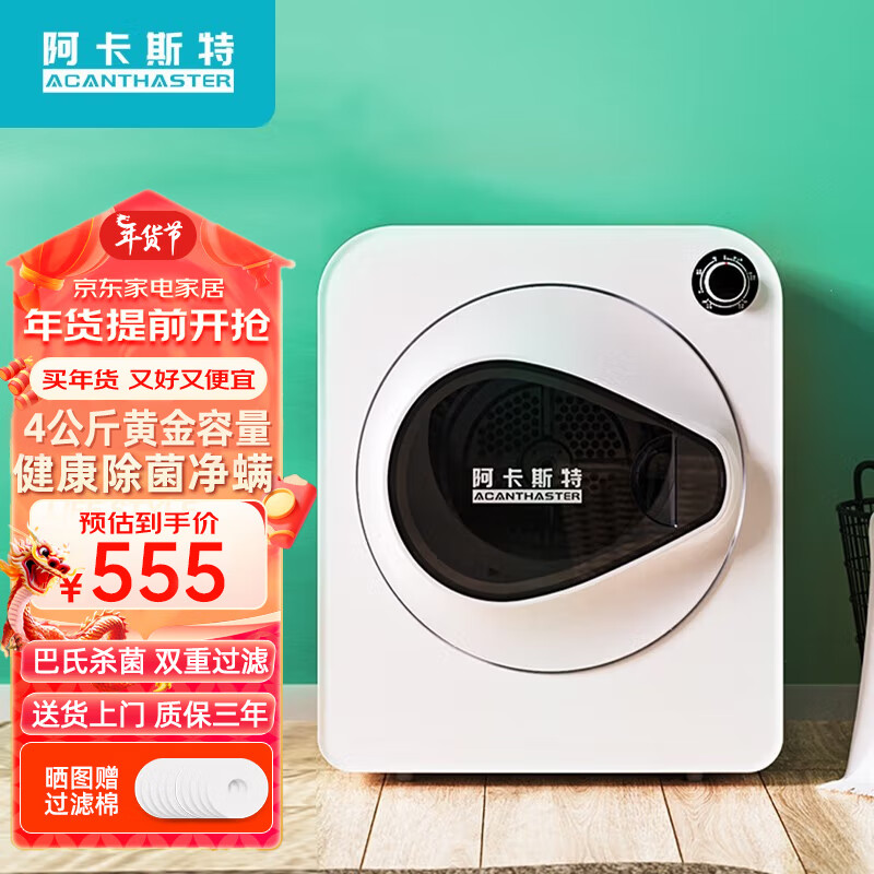 阿卡斯特衣服烘干机家用速干衣小型杀菌除螨消毒滚筒干衣机 301M 4KG机械款价格:788.00元!