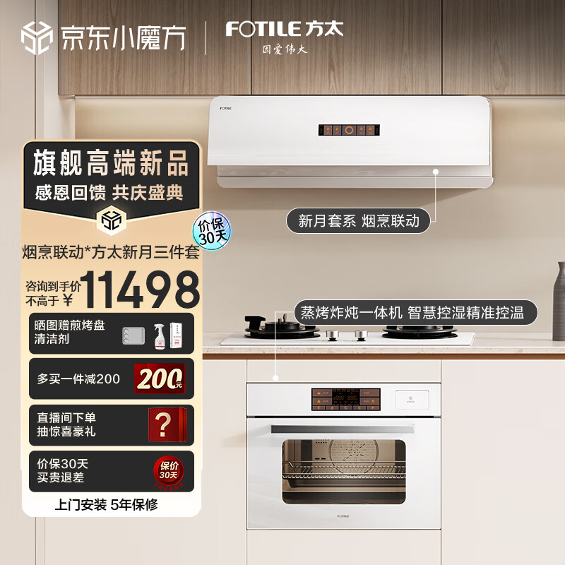方太(FOTILE)烟灶蒸烤三件套 24巡航风量挥手变频烟机 5kW燃气灶 蒸烤一体机 F1-W+THF1-W+EF1.I-W价格:11398.00元!