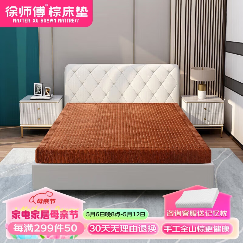 徐师傅全山棕床垫硬棕垫手工线缝单双人榻榻米床垫定制1.5*2米价格:2690.00元!
