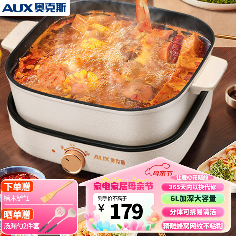 奥克斯(AUX)电火锅 火锅专用锅 电锅火锅锅多功能锅分体式家用电热锅电炒锅 6L M8289价格:179.00元!