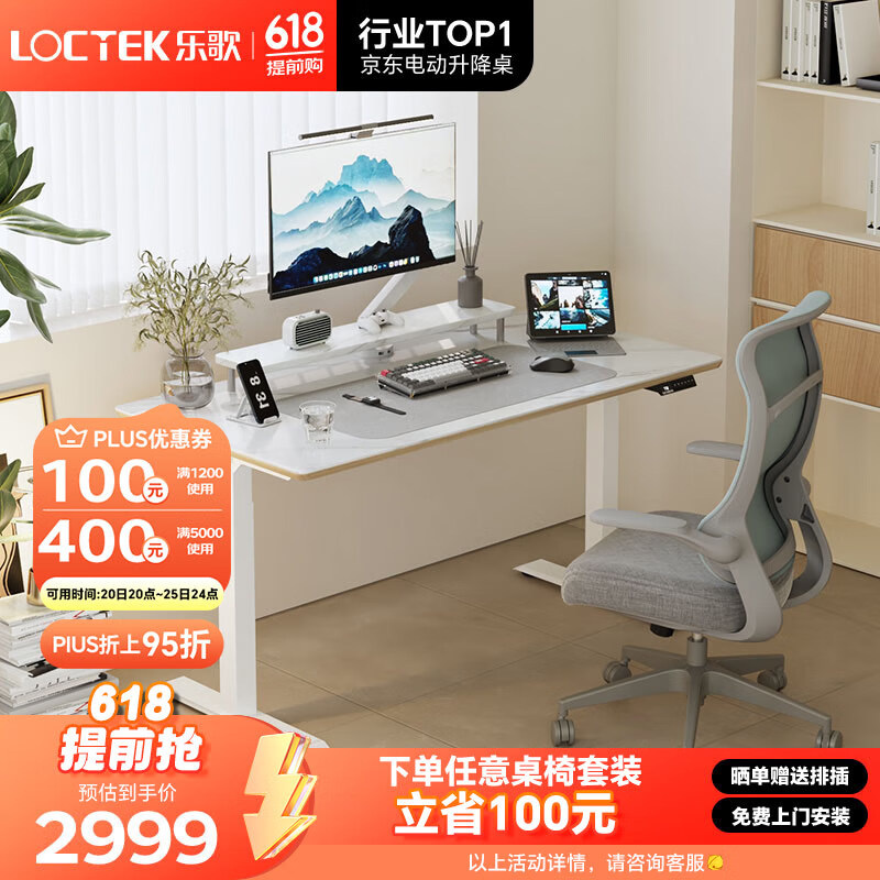 乐歌电动升降桌电脑桌双电机站立办公家用写字书桌 E3/1.4m岩板套装价格:2999.00元!