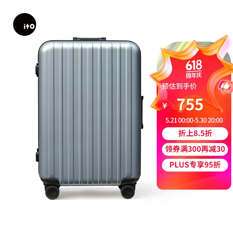 ITO行李箱CLASSIC 15拉杆箱男女旅行登机箱万向轮大容量银色20英寸价格:888.00元!