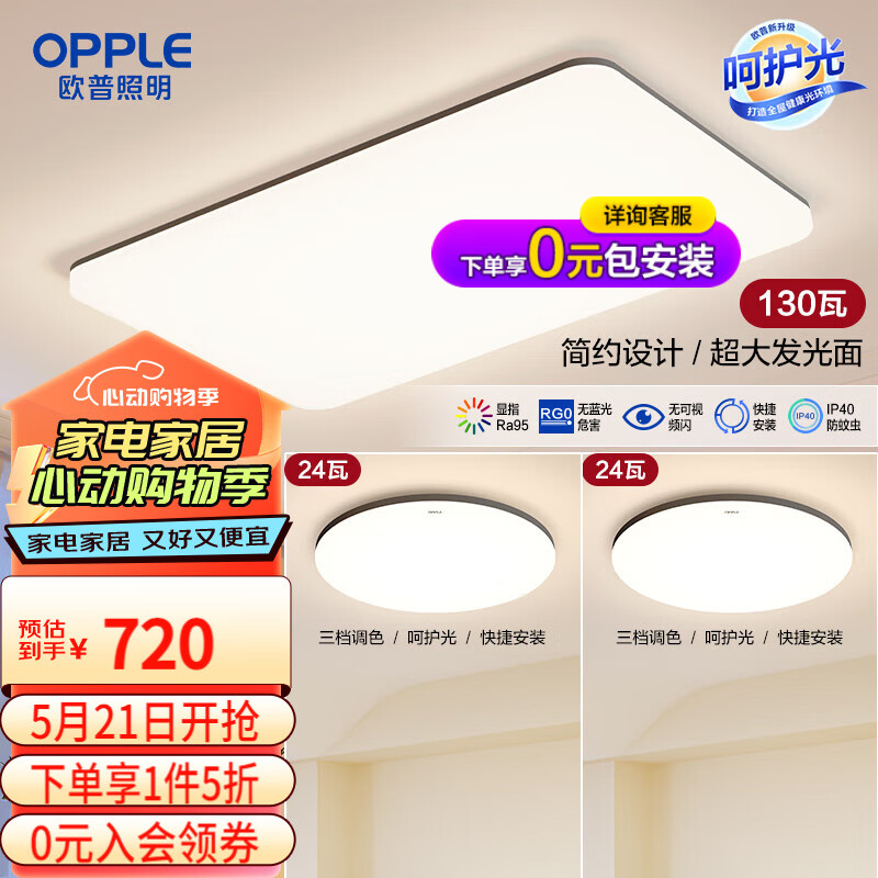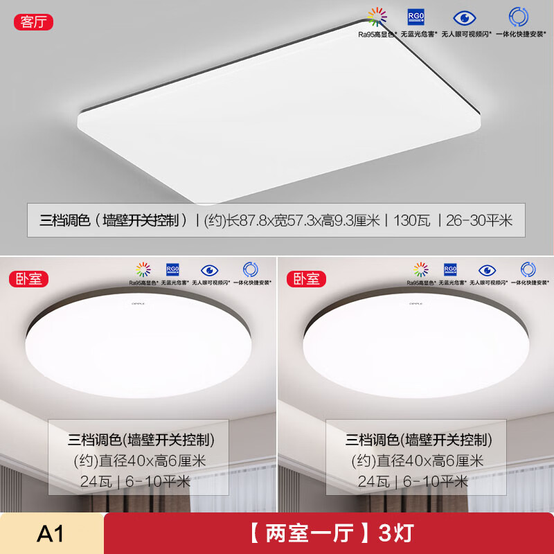 欧普照明(OPPLE) 吸顶灯客厅大灯可调光LED照明灯具灯饰套餐2呵护光价格:1440.00元!