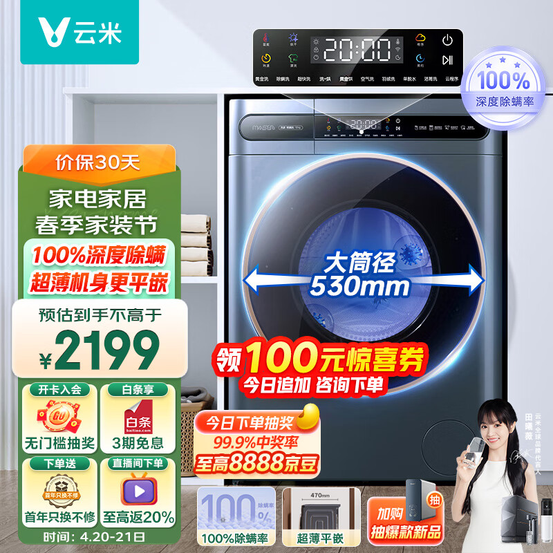 云米(VIOMI)滚筒洗衣机全自动家用 超薄全嵌 10公斤变频洗烘一体机Master S 除菌除螨洗大筒径 WD10FE-B6C价格:2299.00元!
