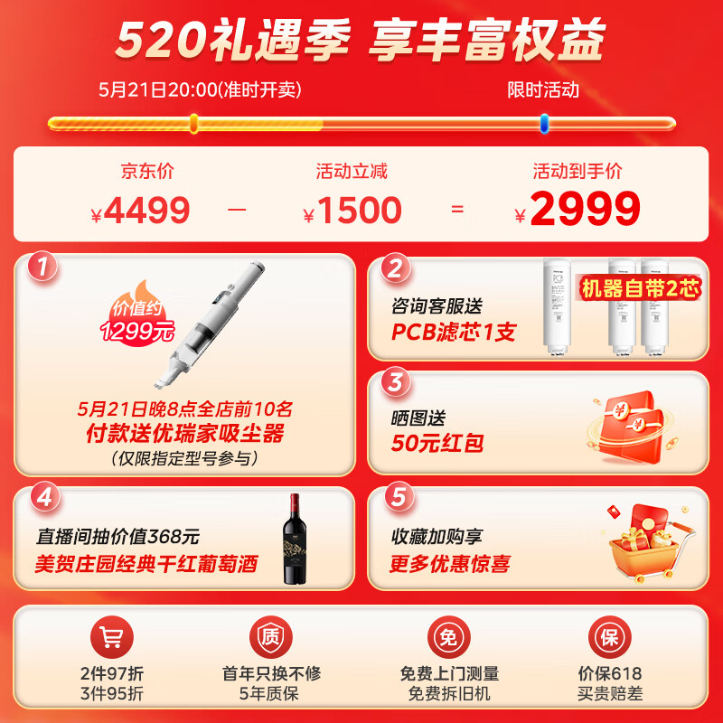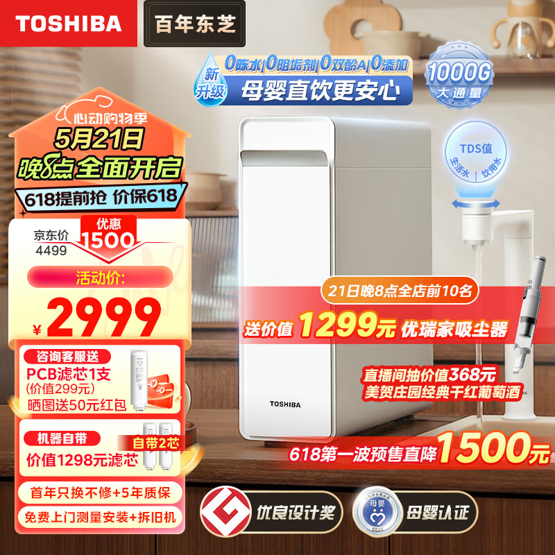 东芝(TOSHIBA)净水器家用净水机 大白梨1000G 厨下式净水器直饮机TSC1000 6年RO反渗透过滤器 0陈水 净洗分离价格:2999.00元!