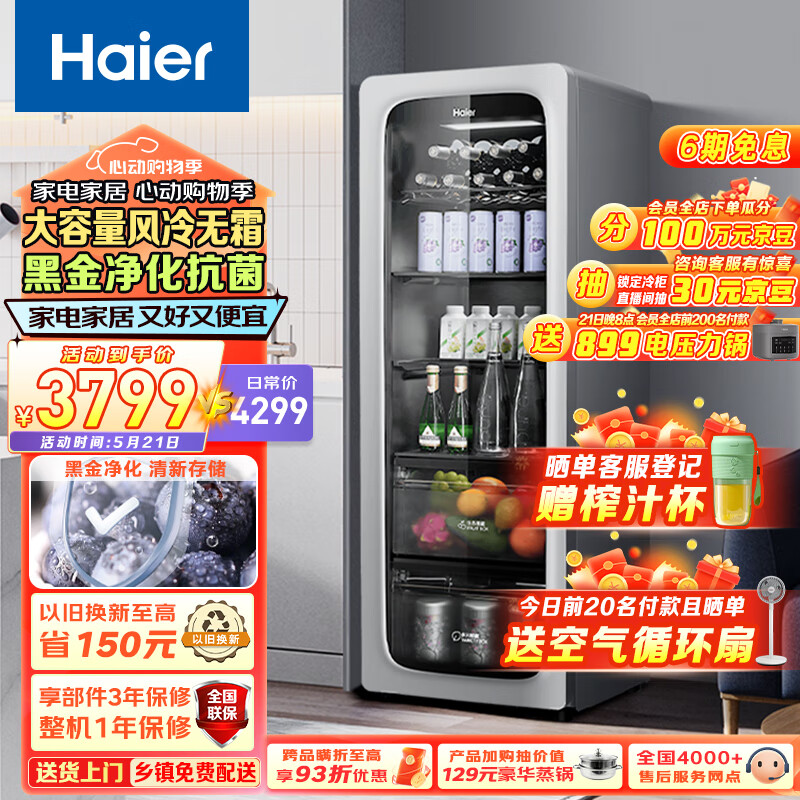 海尔200升家用客厅办公室冷藏柜暖藏冰吧能量吧茶叶饮料水果蔬菜保鲜柜小型冰箱冰河银LC-200WLH9ES1价格:4199.00元!