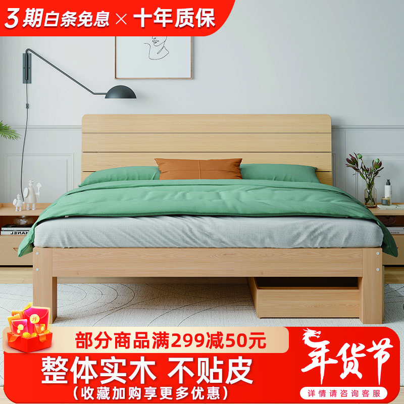 意米之恋实木床现代简约家用双人床卧室家具储物床 1m*2m【满铺】JY-02价格:429.00元!