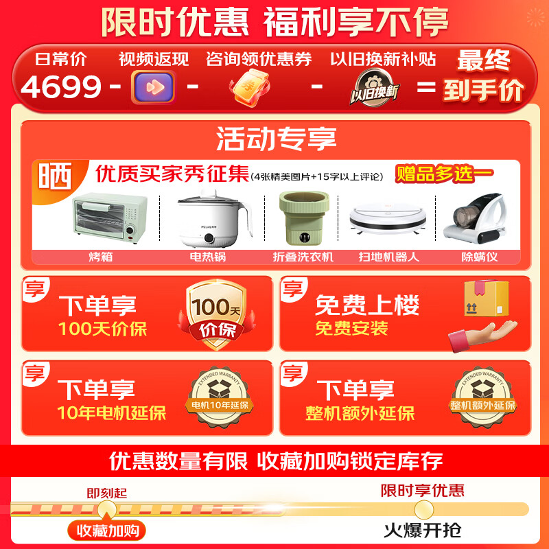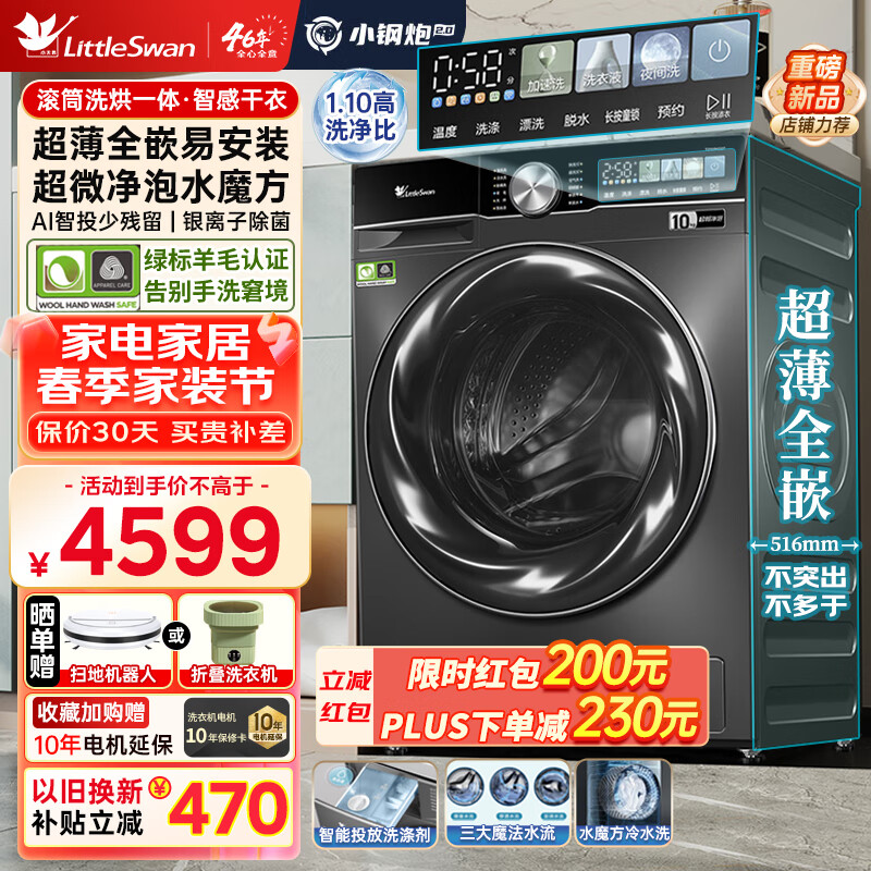 小天鹅(LittleSwan)滚筒洗衣机10公斤大容量小钢炮2.0洗烘一体1.1洗净比超微净泡水魔方智能投放超薄全嵌TD100M22IT价格:4599.00元!