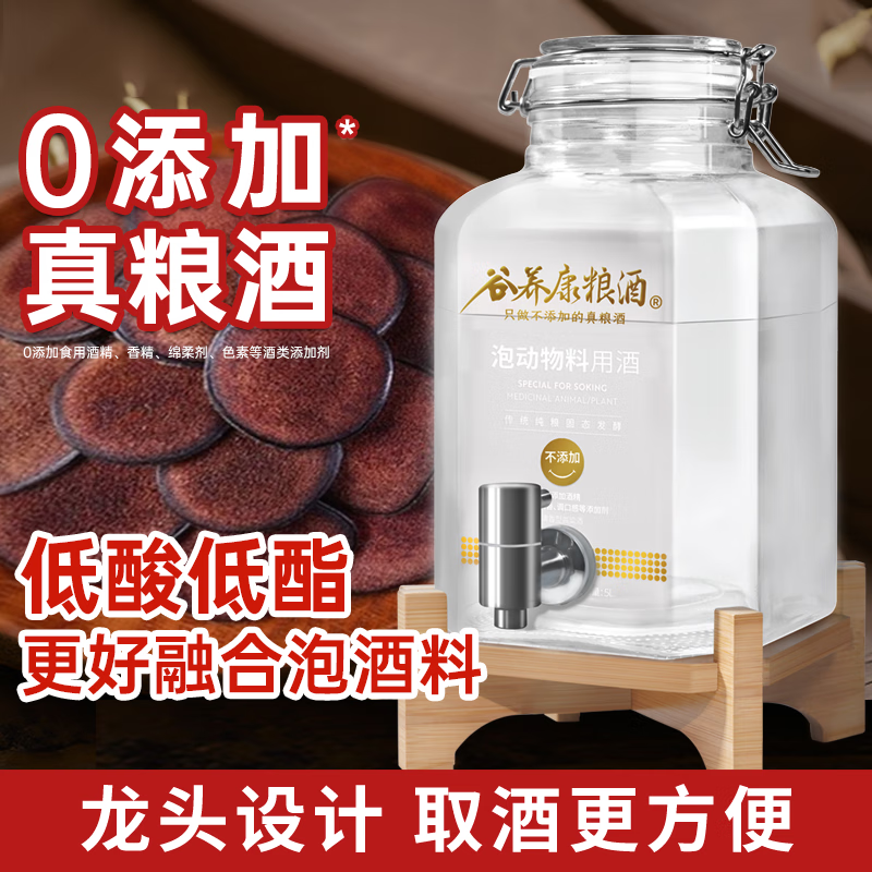 谷养康粮食酒 泡酒用酒大瓶清香高粱酒白酒泡果酒泡动植物料用酒真粮酒 60度 5L 1瓶 【龙头款】价格:529.00元!