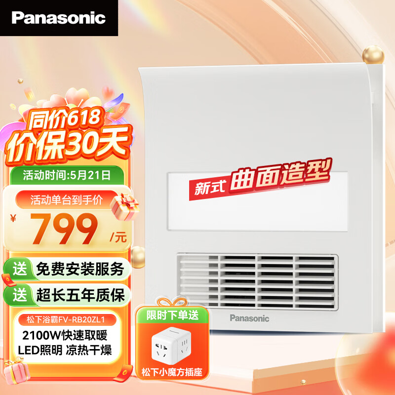 松下(Panasonic)浴霸FV-RB20ZL1风暖浴霸吊顶换气浴室暖风卫生间 小白弧照明浴霸 价格:798.90元!