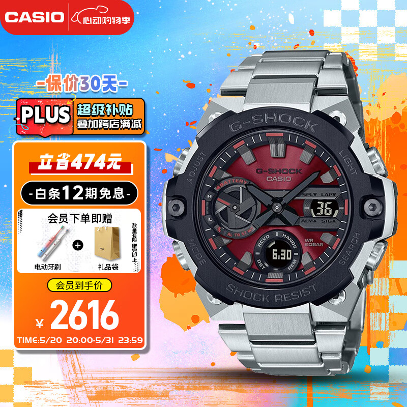 卡西欧(CASIO)运动手表男士G-SHOCK钢铁坚毅之心电子表520礼物GST-B400AD-1A4价格:3090.00元!