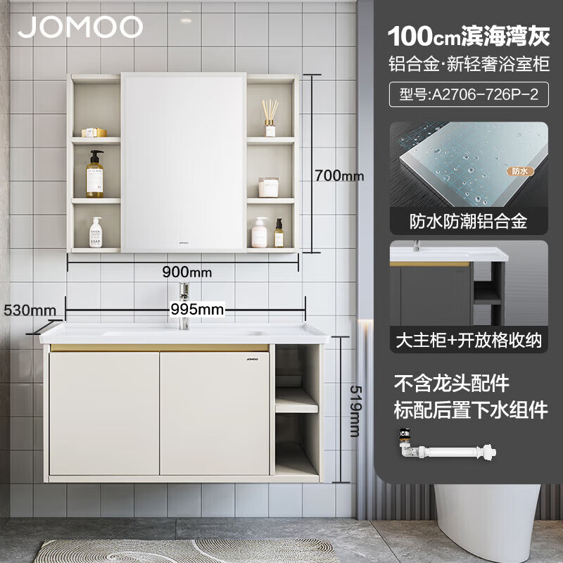 九牧(JOMOO)浴室柜 陶瓷一体盆铝合金悬挂抗菌洗脸组合柜100cm A2706-726P-2价格:2749.00元!