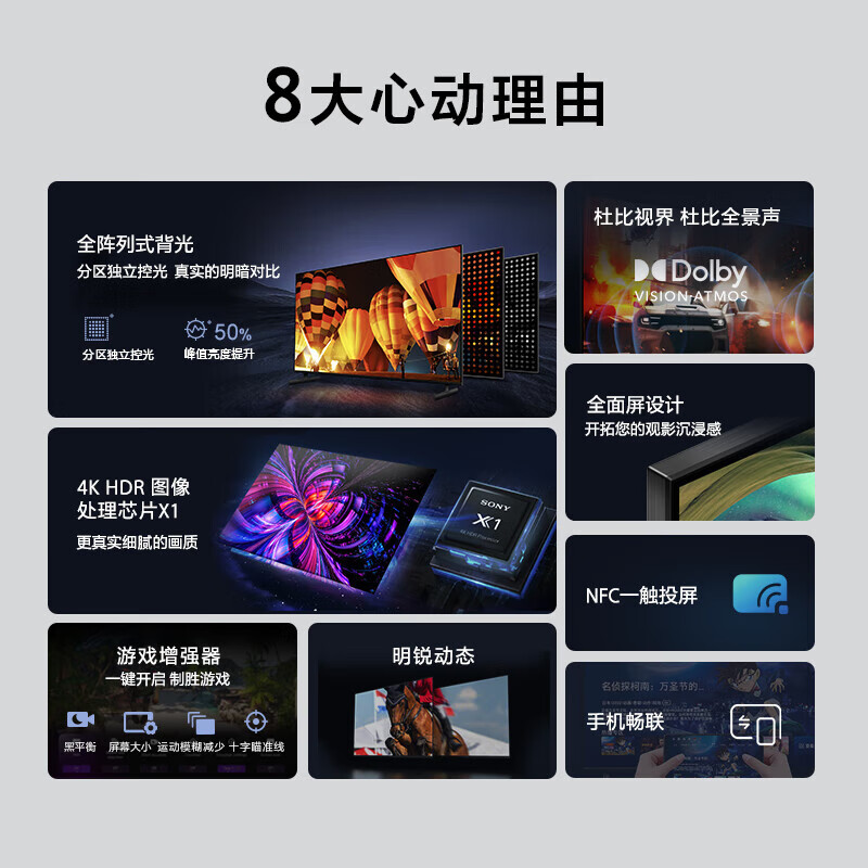 索尼(SONY)65英寸4KX1芯片杜比音效 屏智能电视 全阵列背光120Hz高刷 (X85K升级款)KD-65X85L以旧换新价格:6599.00元!
