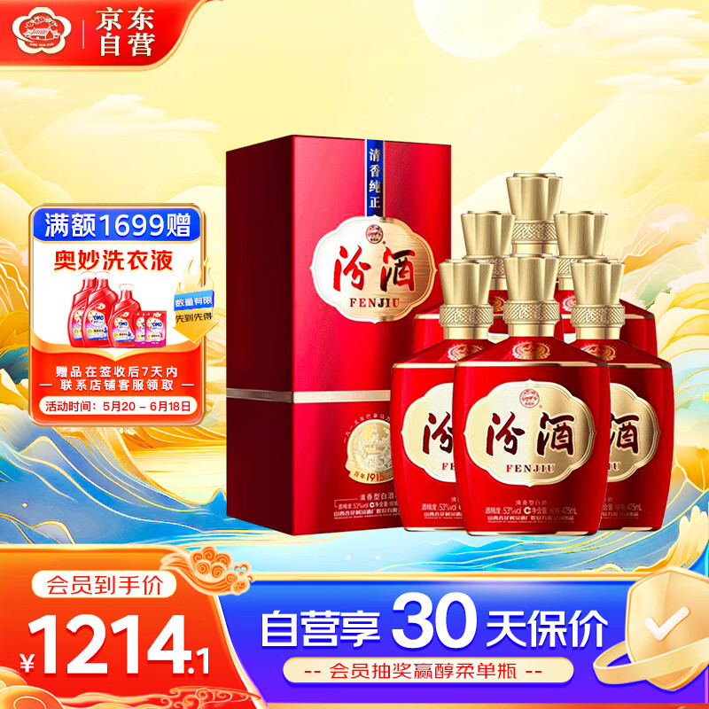 汾酒 1915巴拿马基础版 清香型白酒 53度 475ml*6瓶 整箱装 送礼宴请价格:1278.00元!