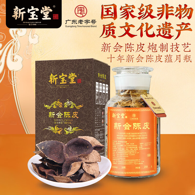 商品名称:岭南新宝堂十年新会陈皮10年老陈皮蕴月瓶礼盒250克