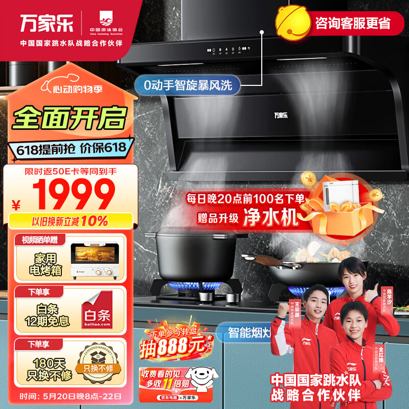 万家乐 抽油烟机顶侧双吸油烟机 7字型烟灶联动套装 23m3/min大吸力油烟机燃气灶具套装AK6+KV063B液化气价格:2249.00元!