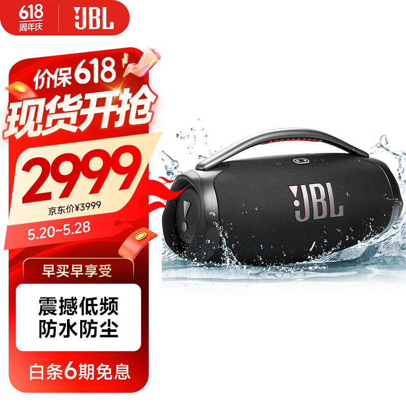 JBL BOOMBOX3 音乐战神三代 便携蓝牙音箱 低音炮 户外音箱 防尘防水 家庭影院音响 音响礼物 黑色价格:2999.00元!