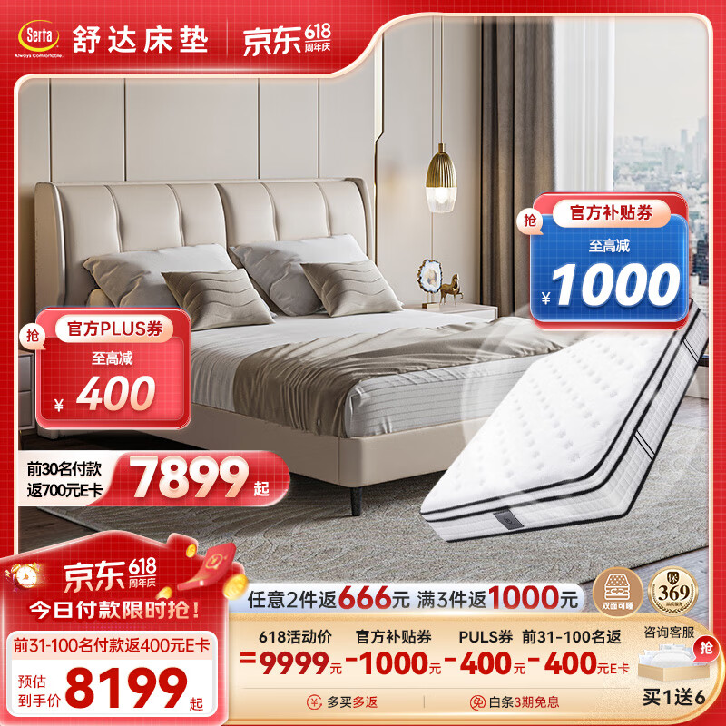 舒达(serta)致眠+星享套床(米白色)床垫1.5米*2米价格:9999.00元!