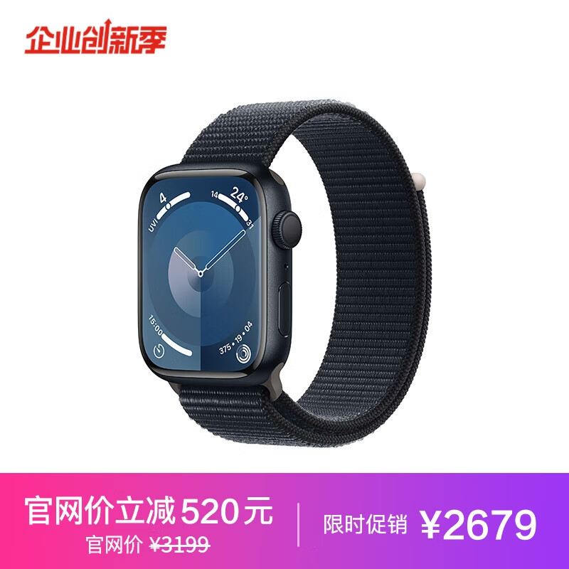 Apple Watch Series?9 (GPS);45?毫米午夜色铝金属表壳;午夜色回环式运动表带 MR9C3CH/A*企业专享价格:2679.00元!