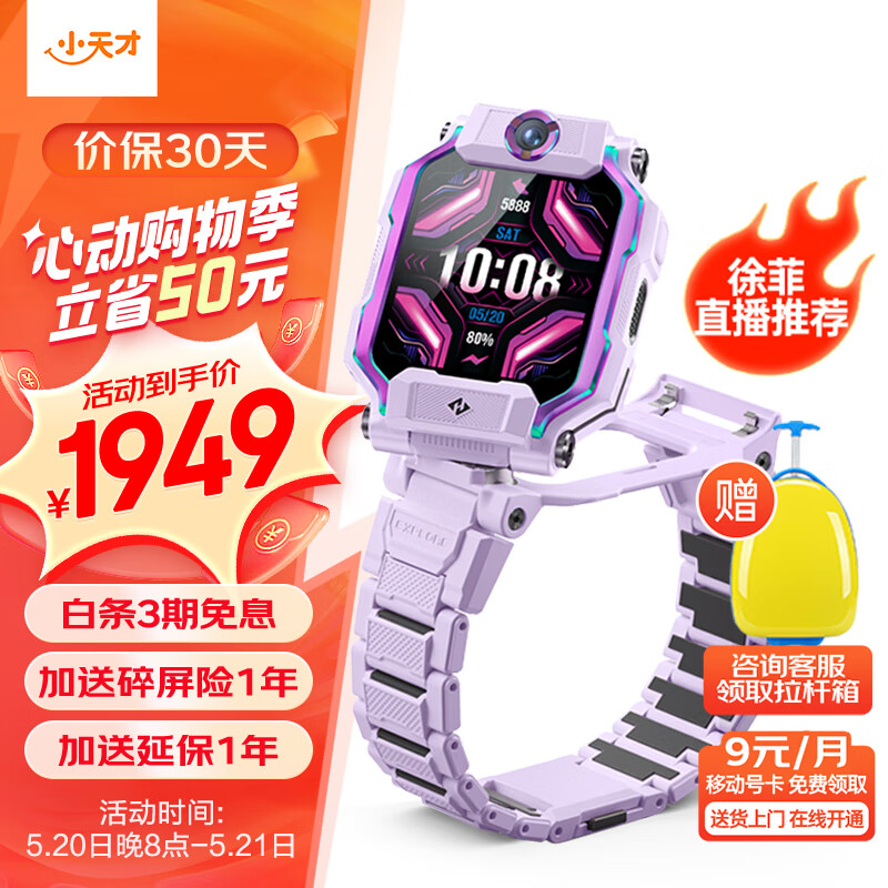 小天才儿童电话手表Z9 徐菲直播推荐 体温监测智能手表 学生儿童4G视频拍照双摄定位男女孩豆蔻紫价格:1949.00元!