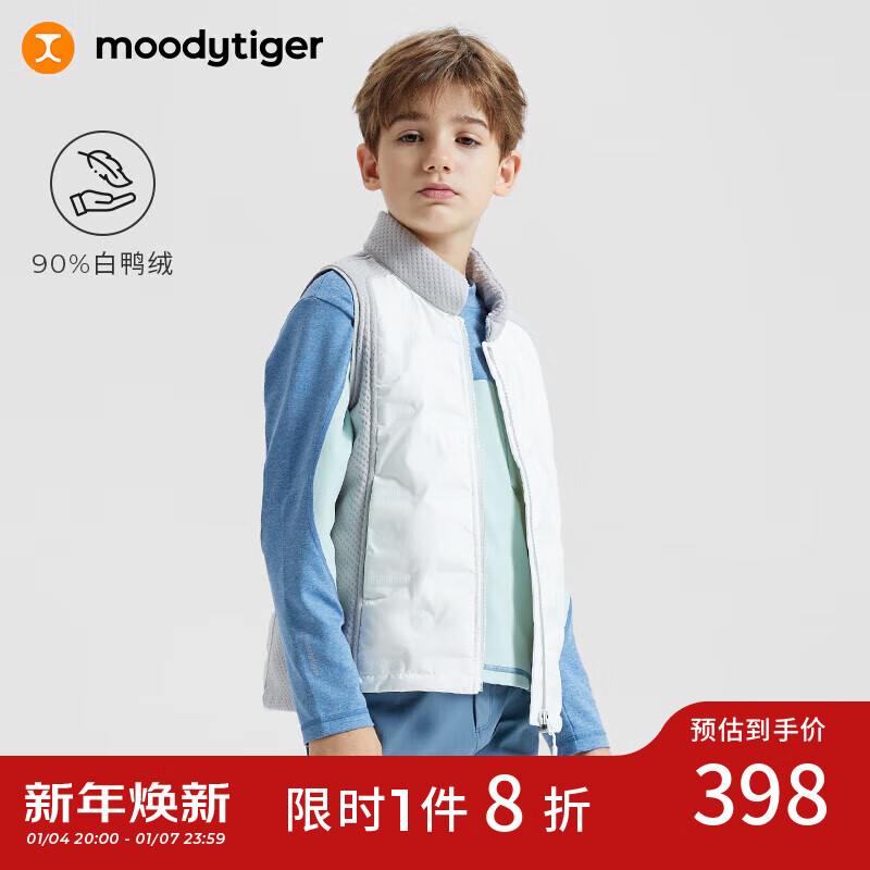 moodytiger儿童羽绒马甲23年秋冬季轻薄款男女童中性外穿羽绒背心价格:498.00元!