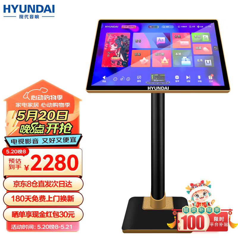 HYUNDAI现代专业点歌机家庭影院ktv高清触摸屏点唱机设备一台 智能语音电容屏点歌机 现代点歌机H19L(2T硬盘+19吋电容触摸屏)价格:2680.00元!