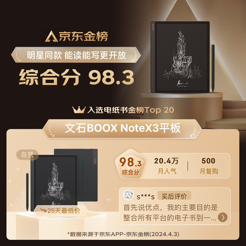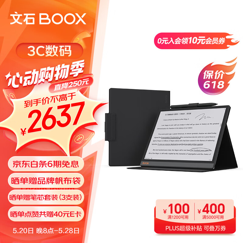 BOOX文石 NoteX3 10.3英寸电子书阅读器平板 墨水屏电纸书电子纸 便携阅读看书学习 磁吸保护套套装价格:2637.00元!