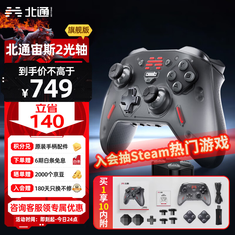 北通宙斯2光轴多模游戏手柄xbox自定义模组switch电脑steam手机蓝牙体感扳机震动NS幻兽帕鲁原神旗舰黑价格:833.00元!