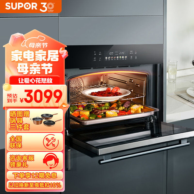 苏泊尔(SUPOR)嵌入式蒸烤箱一体机 家用蒸烤箱 3D恒温智制烤箱 电蒸箱多功能大容量60L ZKQD60-Q-DY60价格:3099.00元!