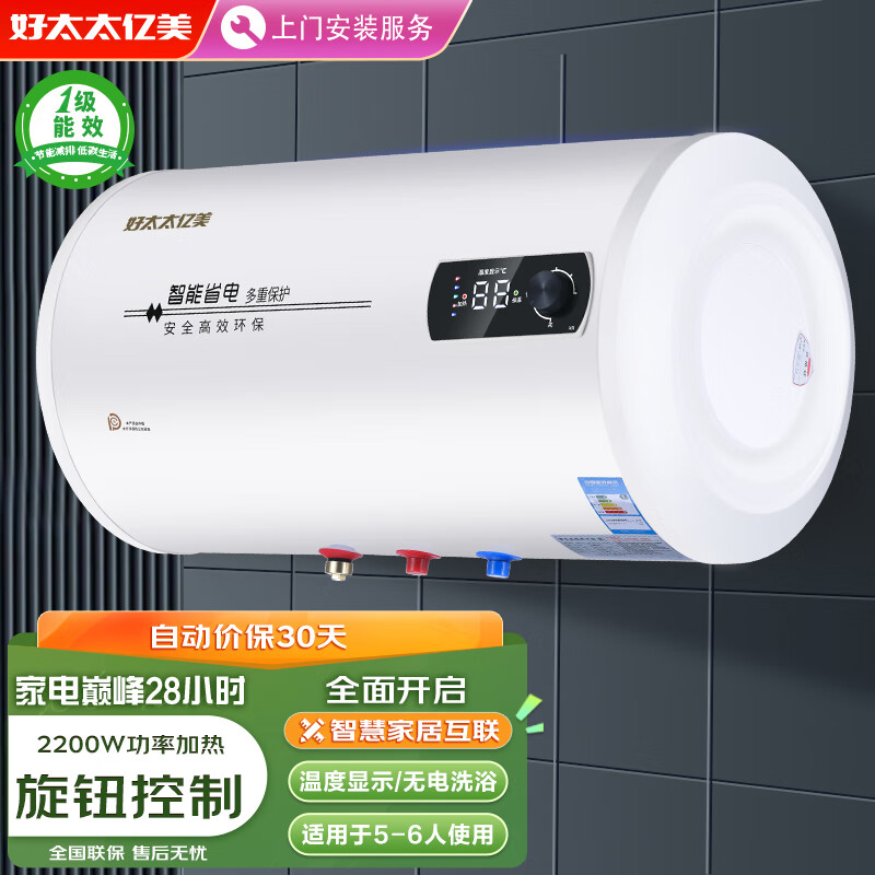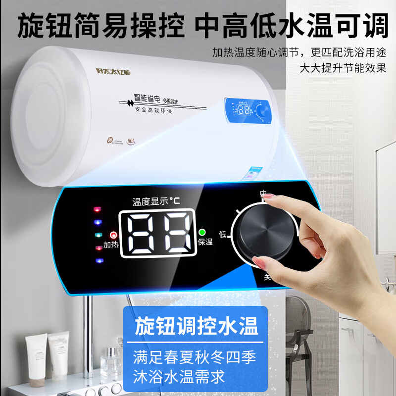 好太太亿美热水器电热水器速热圆桶80升一级能效2000W卫生间洗澡家用出租房小型热水器DSZF80-F801上门安装价格:508.00元!