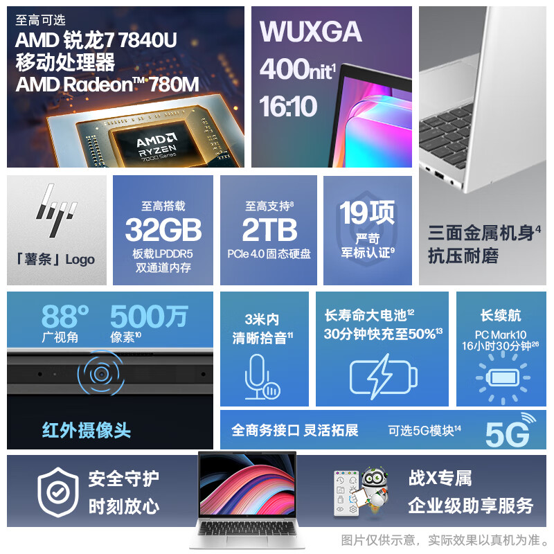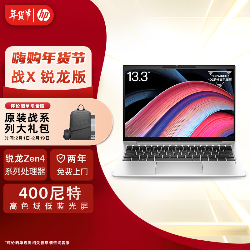 惠普(HP)战X Zen4新锐龙 13.3英寸轻薄笔记本电脑(R7-7840U 16G 1TB 高色域低蓝光屏 2年上门 AI 高性能)价格:5699.00元!