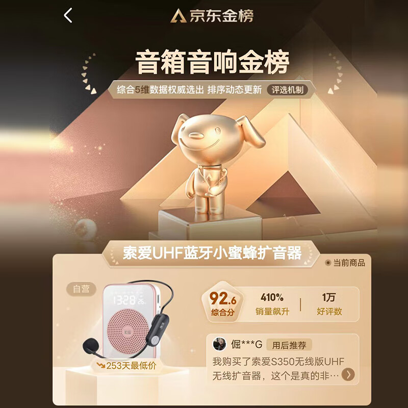 索爱(soaiy)S350UHF无线蓝牙防啸叫小蜜蜂扩音器喇叭教师教学专用麦克风导游音箱闹钟温度计户外收音机 金价格:238.00元!