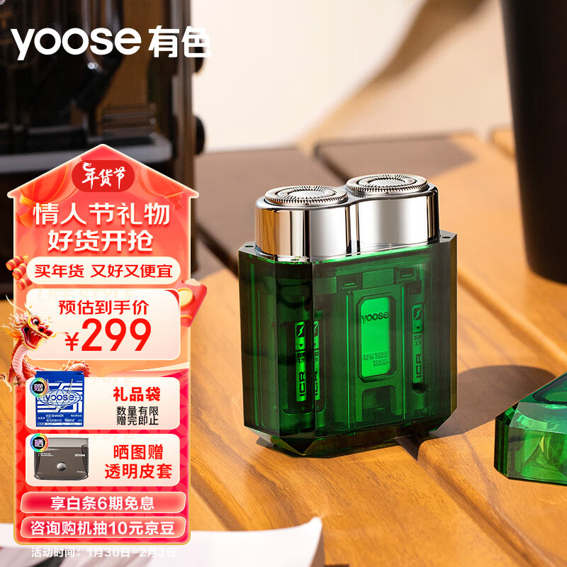 有色(yoose)电动剃须刀 潮流便携 男士刮胡刀 全身水洗 生日新年礼物送男生 胡须刀礼盒 ICE 透明绿价格:314.00元!