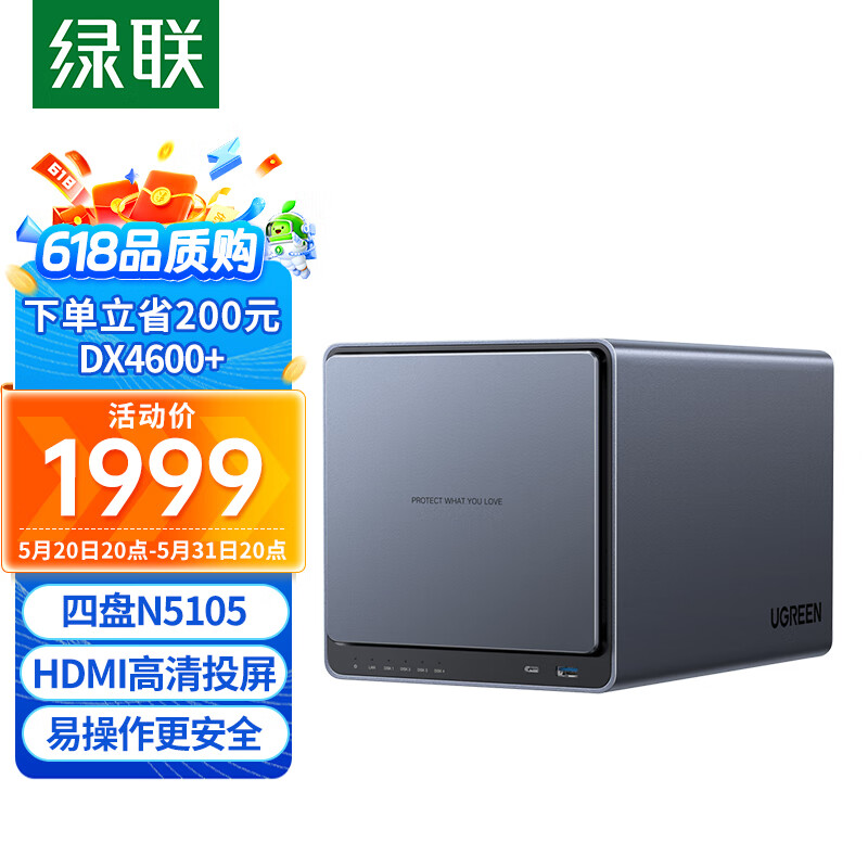 绿联 私有云DX4600+四盘位Nas网络存储个人云硬盘服务器相册备份文件同步 手机平板扩容适用iPhone15价格:2199.00元!