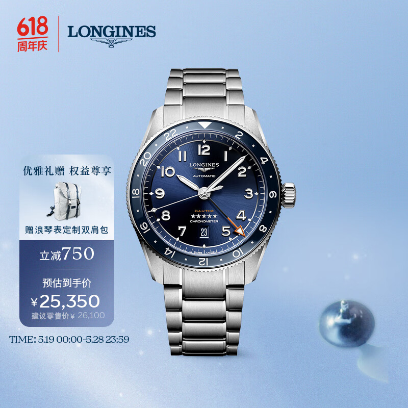 浪琴(LONGINES)瑞士手表 先行者系列祖鲁时间 机械钢带男表L38124936价格:25350.00元!