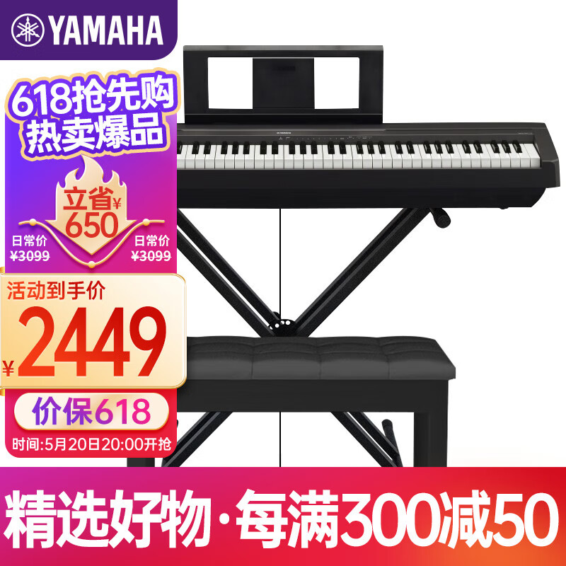 雅马哈(YAMAHA)P45 电钢琴 88键重锤键盘 数码电子钢琴全套配件+X型支架价格:2899.00元!
