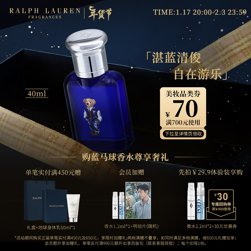 拉夫劳伦(Ralph lauren)【肖战同款】蓝马球淡香水40ml休闲小熊节日生日新年礼物送男女友价格:560.00元!