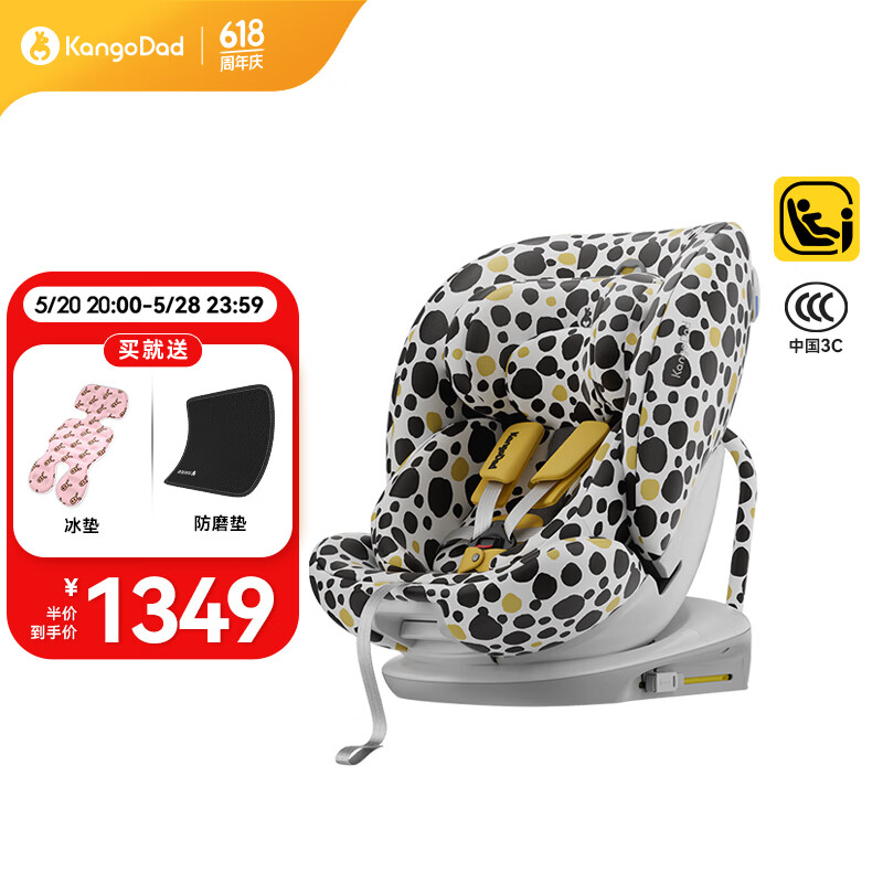 袋鼠爸爸(EURO KIDS)I-SIZE级0-12岁360度90度悬停汽车儿童座椅 星途PLUS波点空间价格:1598.00元!