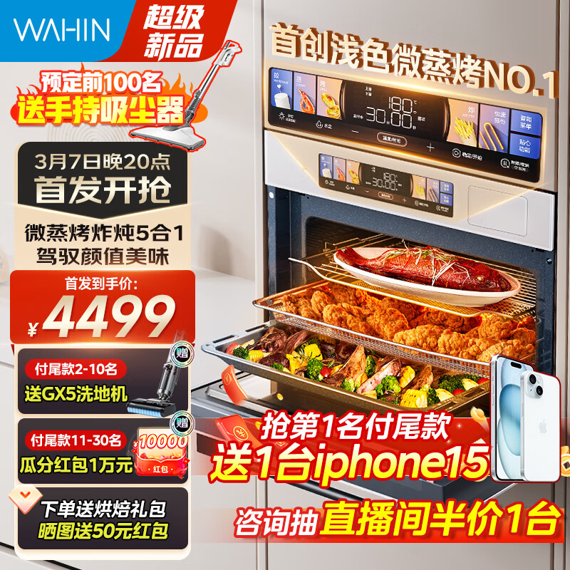 华凌微蒸烤一体机嵌入式蒸烤箱A1 微蒸烤炸炖5合1 55L家用立体热风脱脂UI彩屏智控搪瓷内胆T5A1价格:4499.00元!