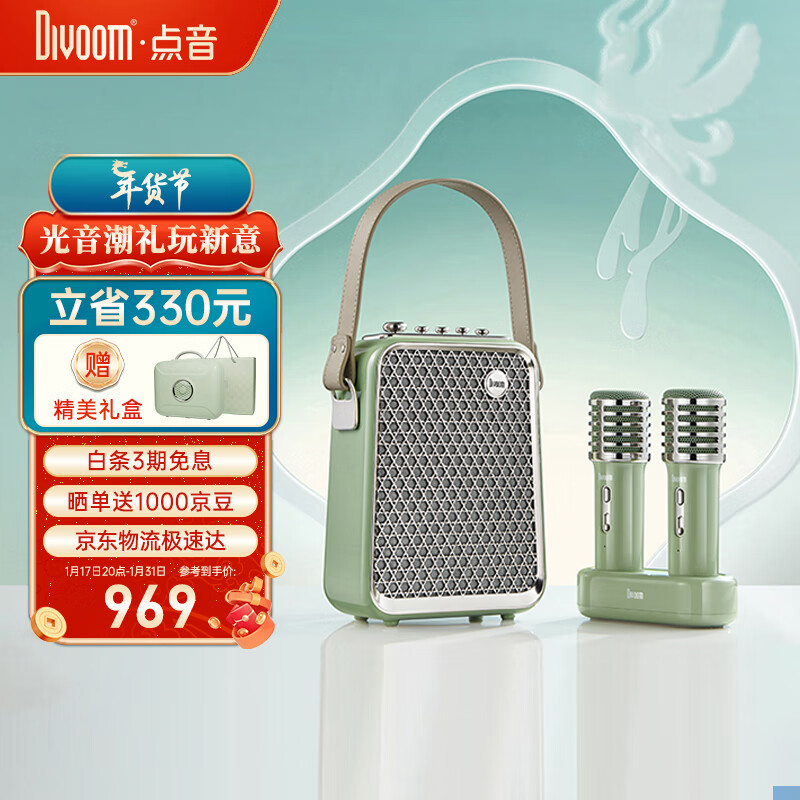 Divoom点音 双麦克风家庭ktv音响套装手提便携户外k歌蓝牙小音箱迷你家用带无线话筒男生日礼物东方青鸾价格:1299.00元!