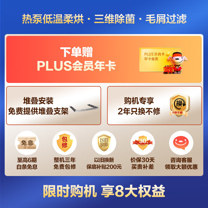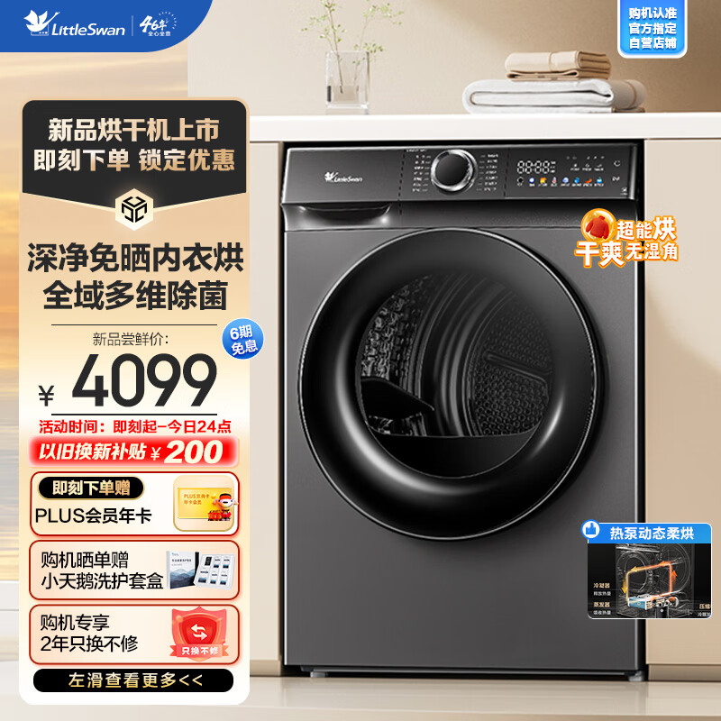 小天鹅(LittleSwan)热泵烘干机家用 全自动干衣机 10公斤大容量 多维除菌除螨 毛屑过滤 回南天必备 TH100VH617MAX价格:7999.00元!
