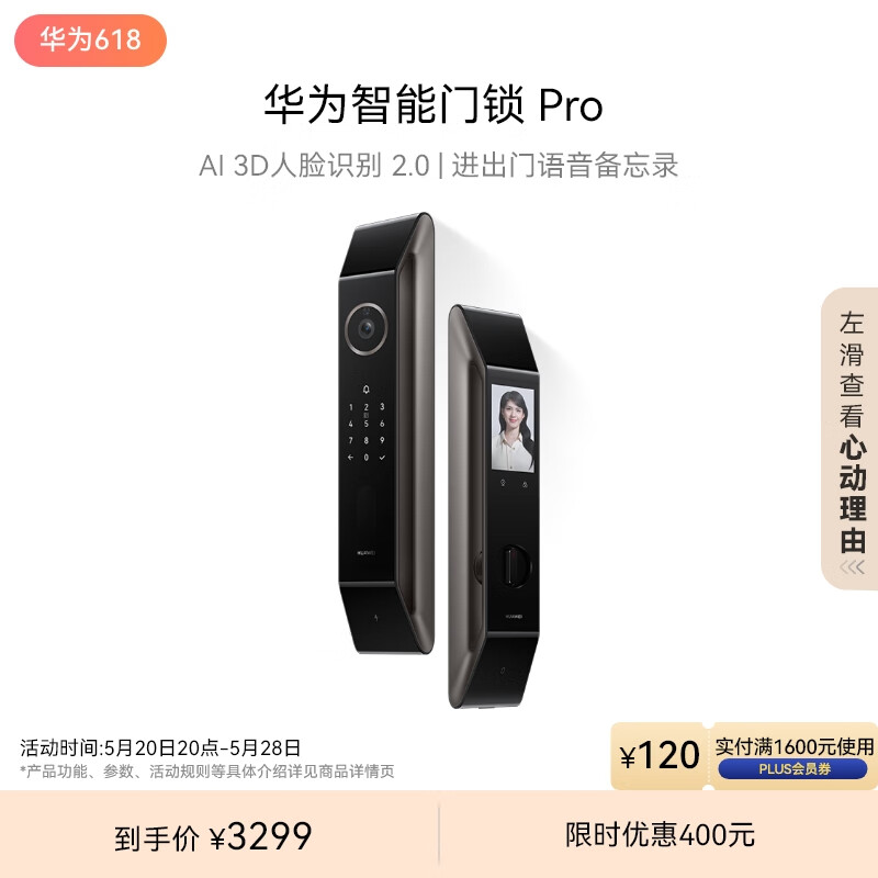 华为智能门锁Pro AI.3D人脸识别 进出门语音备忘录【2023全新升级】 AI指纹锁 电子锁 免费送装拆旧价格:3299.00元!