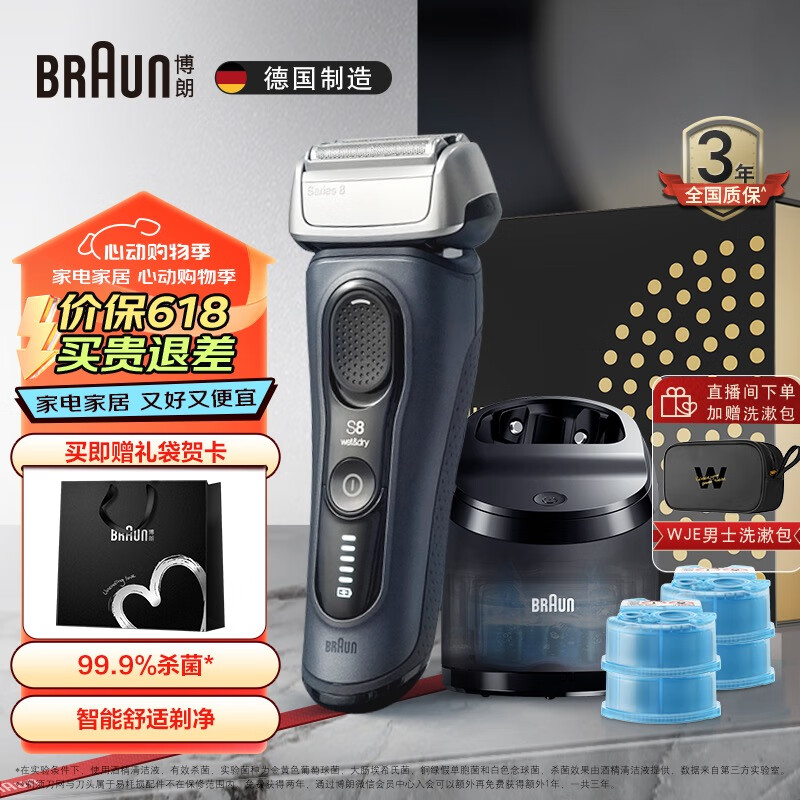博朗(BRAUN)520礼物送男朋友旗舰8系Pro清洁大礼盒款电动剃须刀整机进口往复式剃须刀刮胡刀生日礼物送男友价格:1299.00元!