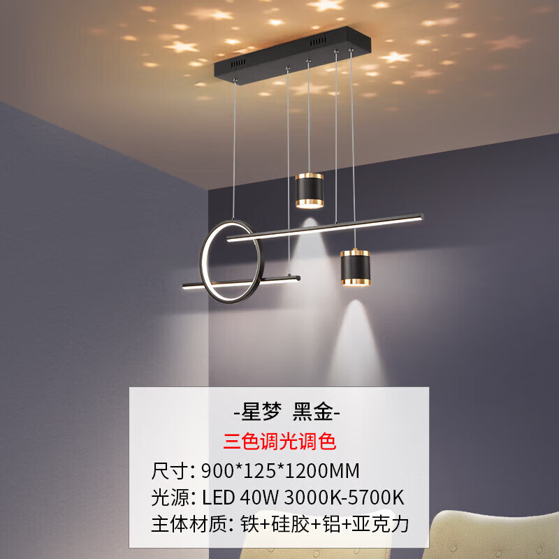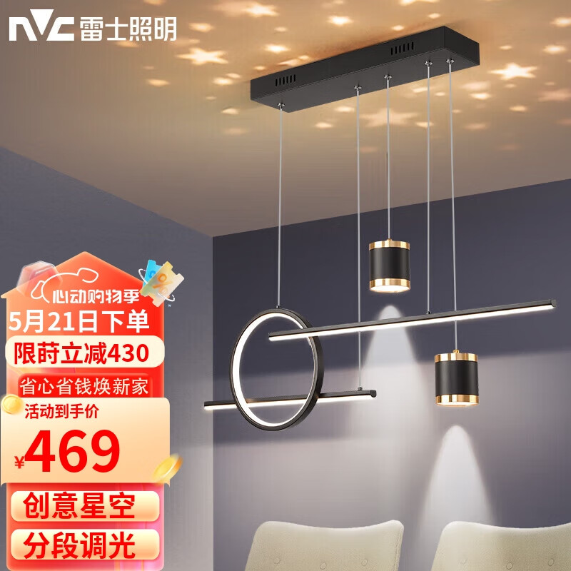 雷士(NVC)餐厅吊灯LED现代简约北欧轻奢黑金餐桌带射灯长条WHDD40D/G-01价格:949.00元!