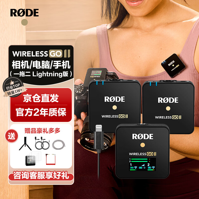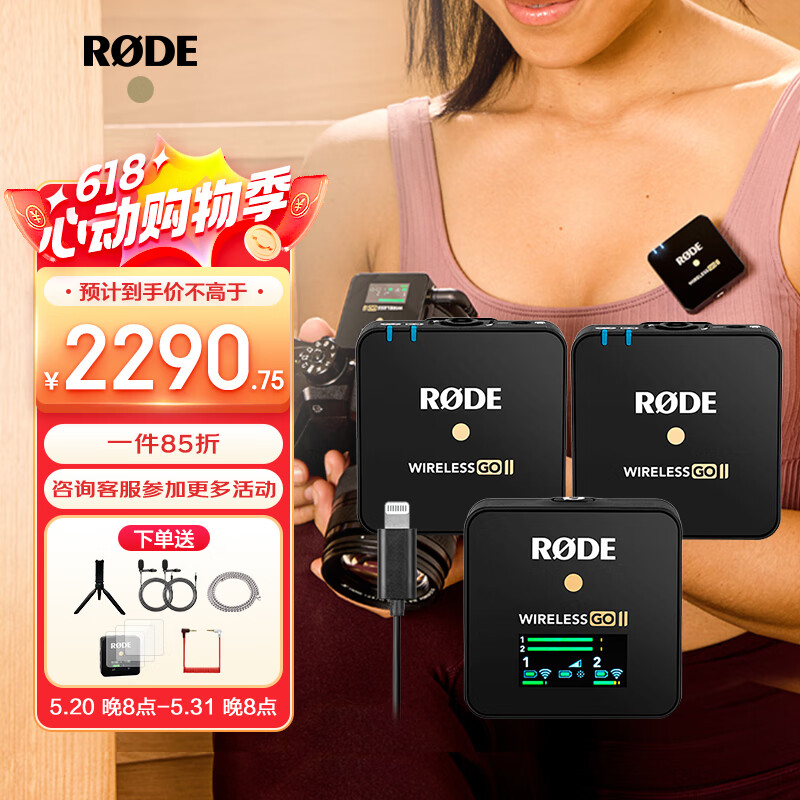 RODE罗德Wireless GO II无线领夹麦克风一拖二直播录音采访视频VLOG手机相机专业收音话筒+苹果线套装价格:2695.00元!