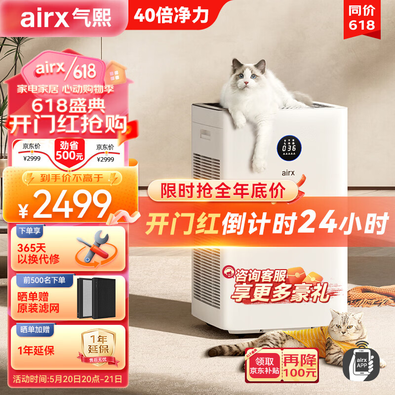 airx气熙 空气净化器 除雾霾过敏源PM2.5除烟尘异味除菌除甲醛空气净化机家用办公室净化器A8P价格:2499.00元!